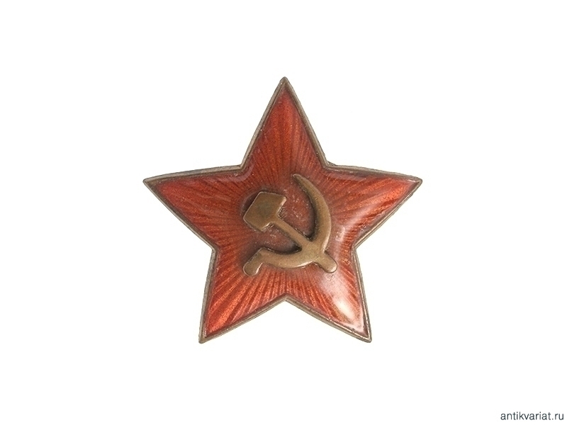 Эмалевая звезда с накладным серпом и молотом на фуражку РККА периода Второй мировой войны. Очень хорошее состояние.