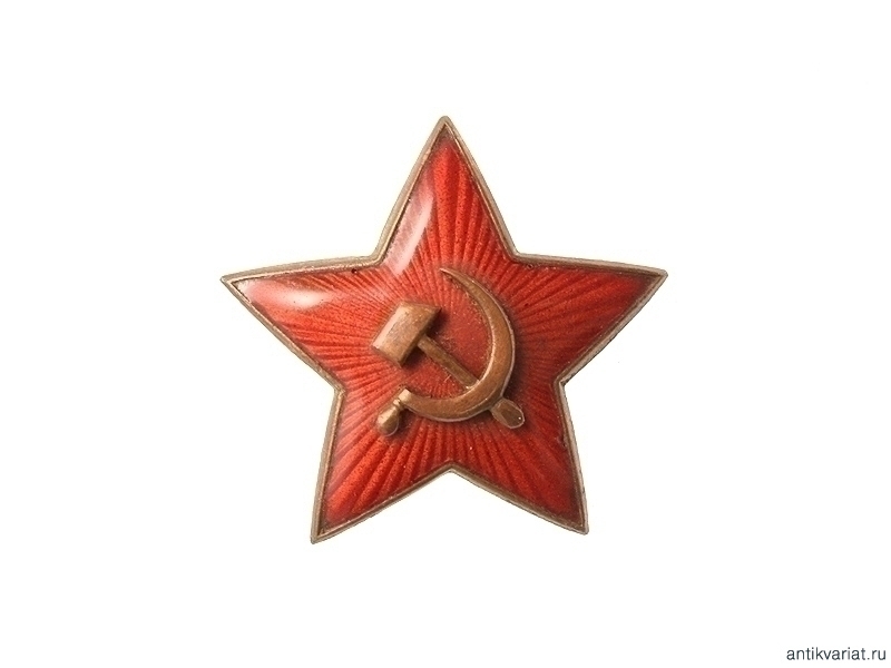 Эмалевая звезда с накладным серпом и молотом на фуражку РККА периода Второй мировой войны. Очень хорошее состояние.