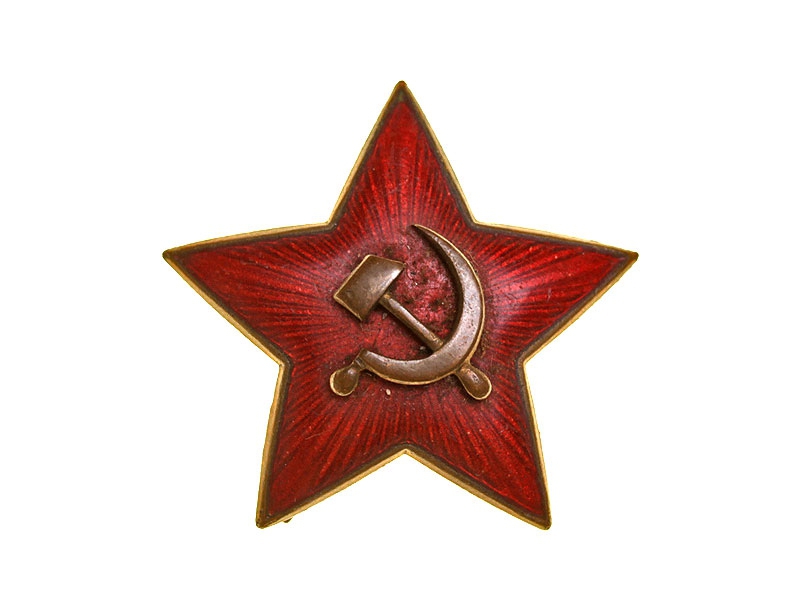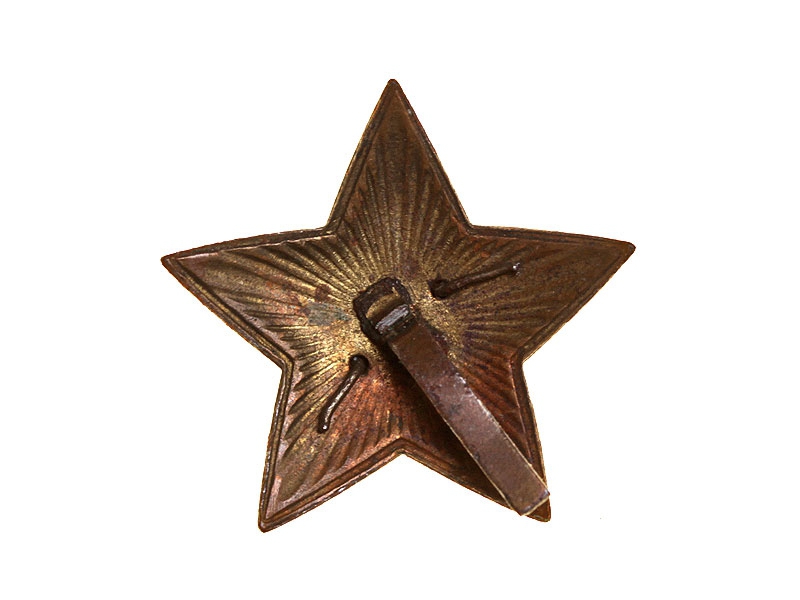 Эмалевая звездочка с накладным серпом и молотом на фуражку РККА периода Второй мировой войны. Отличное состояние эмали, один из крепежных усов обломан.