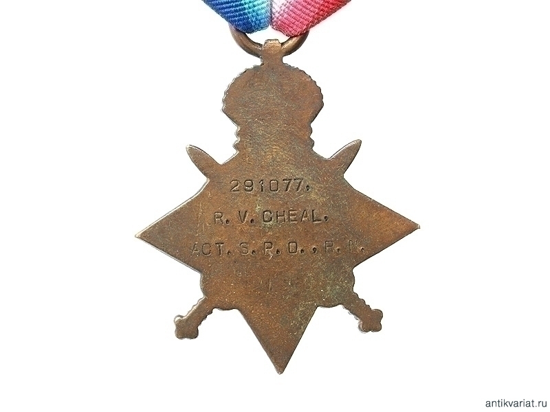 Звезда участника Первой мировой войны 1914 - 1915 годов. Бронза, на оригинальной шелковой ленте. Очень хорошее состояние.