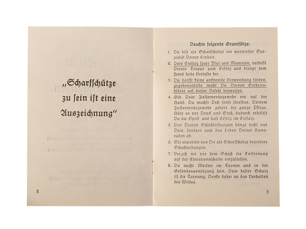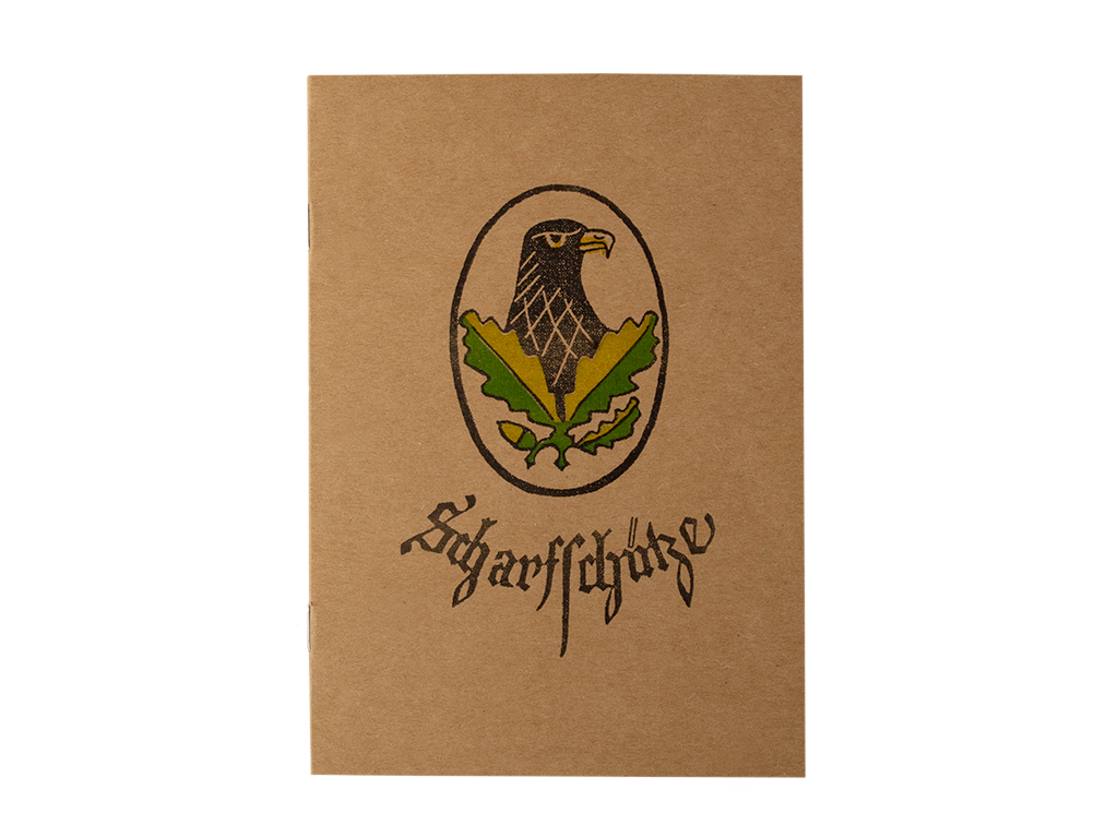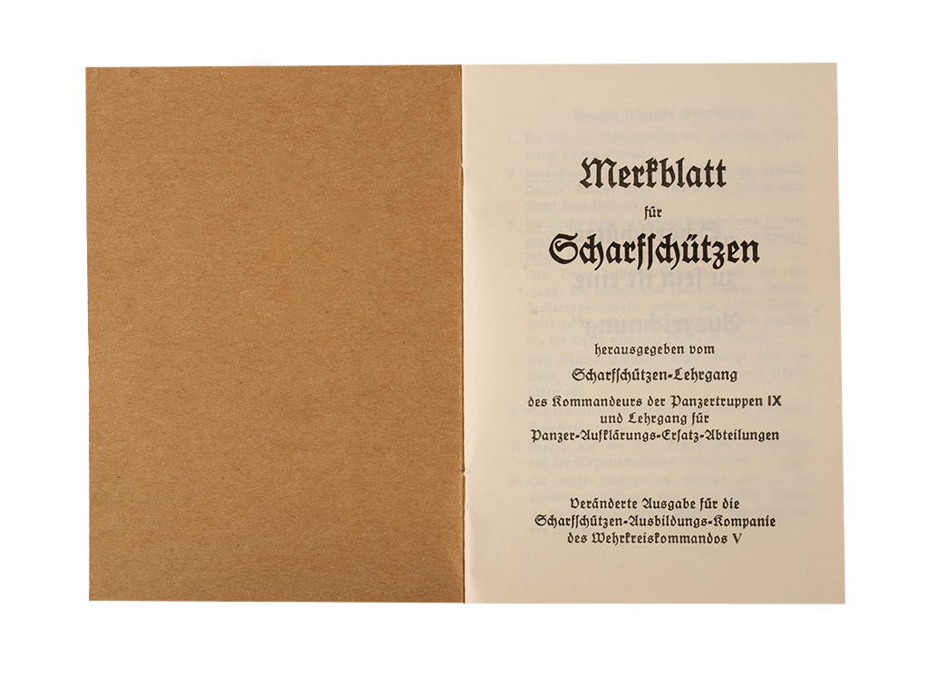 На обложке книжки размещен знак отличия для снайперов, который был учрежден приказом Адольфа Гитлера от 20 августа 1944 года.
