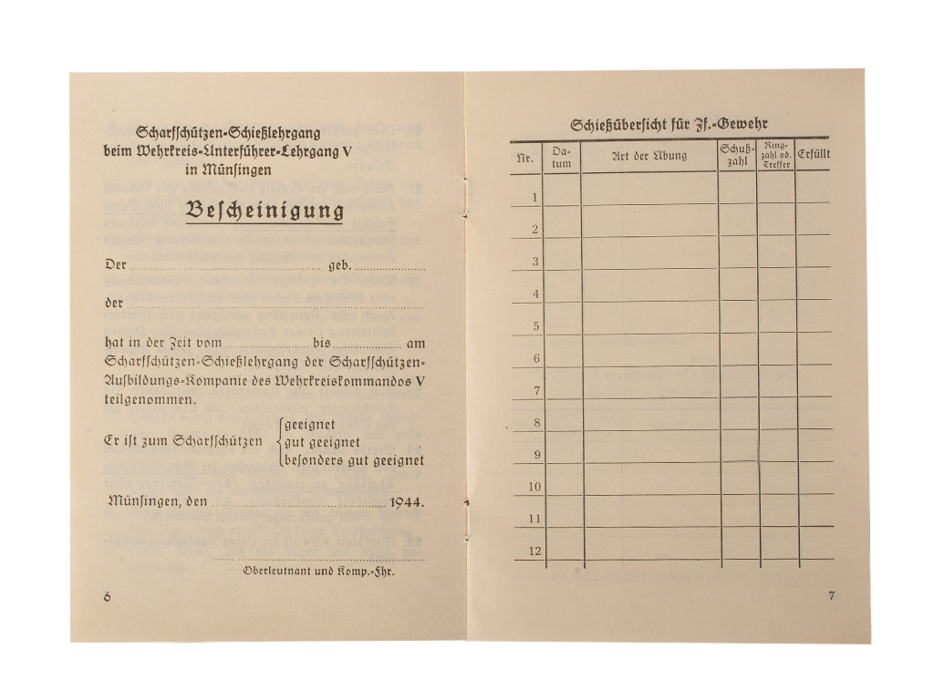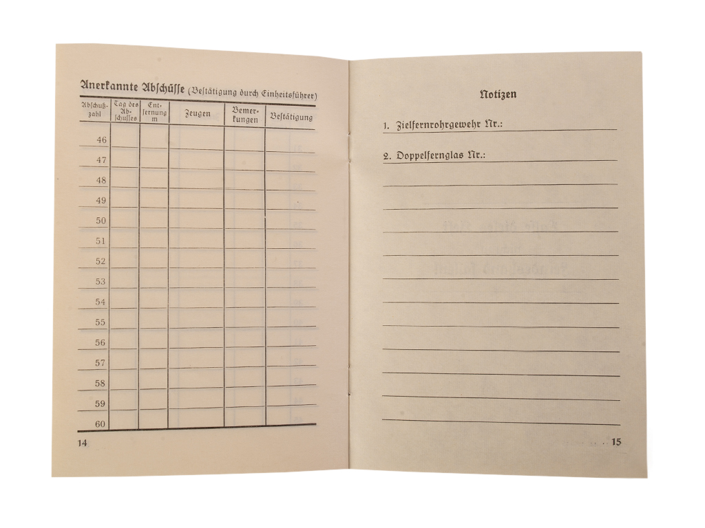 На обложке книжки снайпера размещен Знак отличия для снайперов 3-я степень (без окантовки).