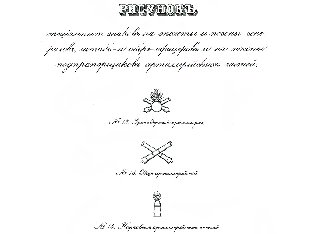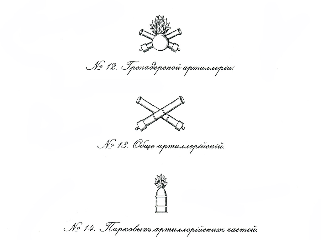 Знак для артиллерийских частей введен Приказом № 100 в 1909 году.