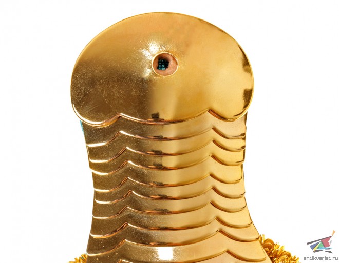 Поле эполет из наборных латунных чешуек, сделанных фабричным способом - штампом, полностью соответствующих оригиналу, чешуйки вызолочены.