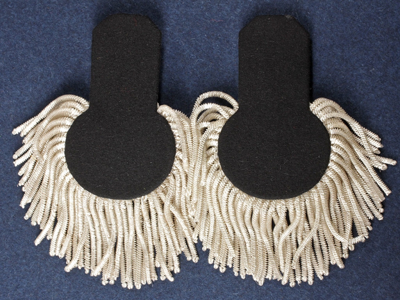 Серебряные гвардейские эполеты с черным подбоем носили инженеры флота, инженеры строительной части флота, юристы флота, морские летчики.