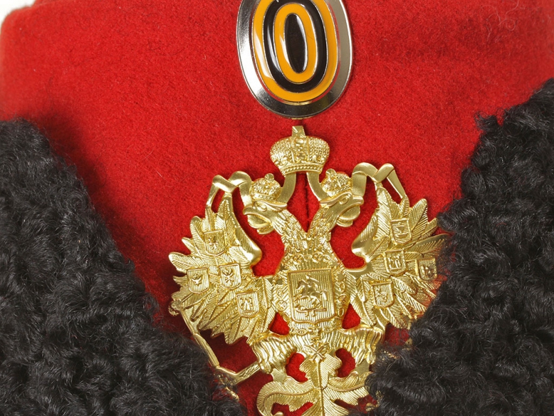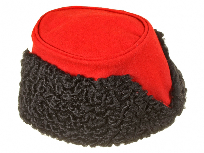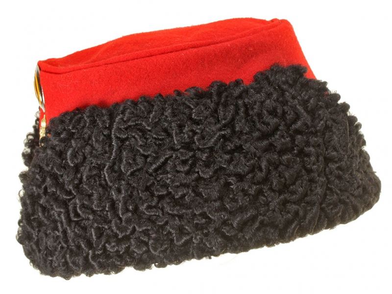 Натуральный каракулевый мех, подбита натуральной кожей, в комплекте: государственный герб желтый латунный и кокарда малая образца 1881 года.