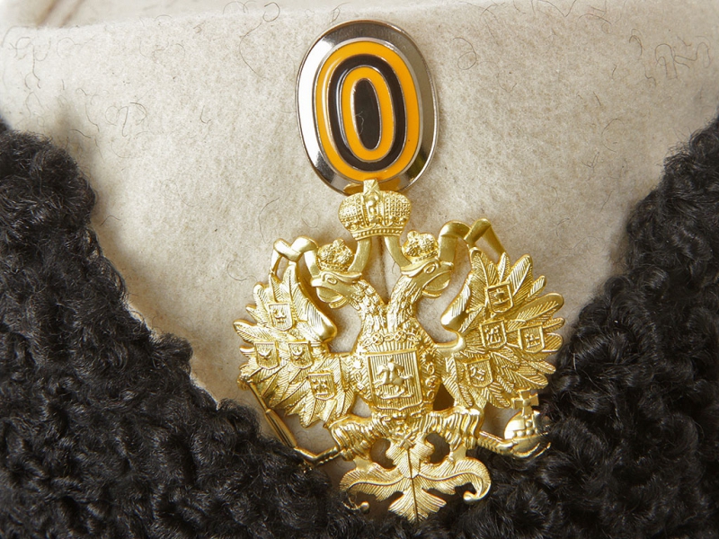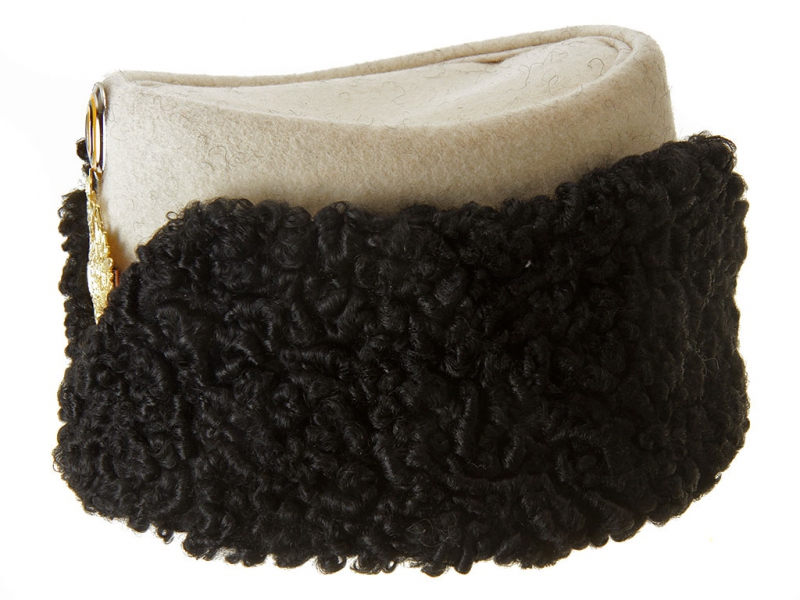 Натуральный каракулевый мех, подбита натуральной кожей, в комплекте: государственный герб желтый латунный и кокарда малая образца 1881 года.