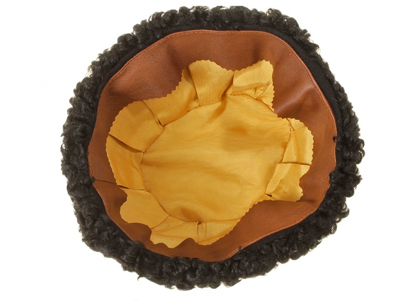 Натуральный каракулевый мех, подбита натуральной кожей, подкладка из муара, в комплекте: государственный герб желтый латунный и кокарда малая образца 1881 года.