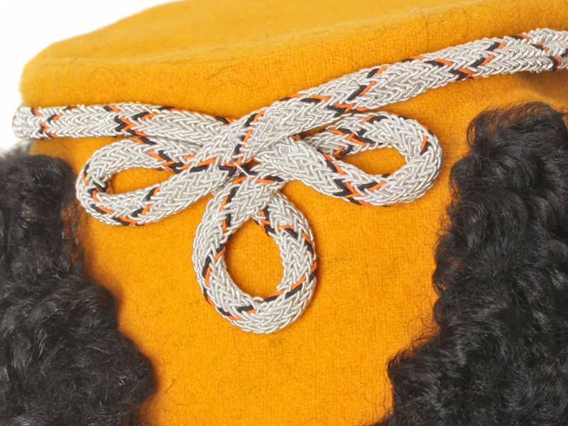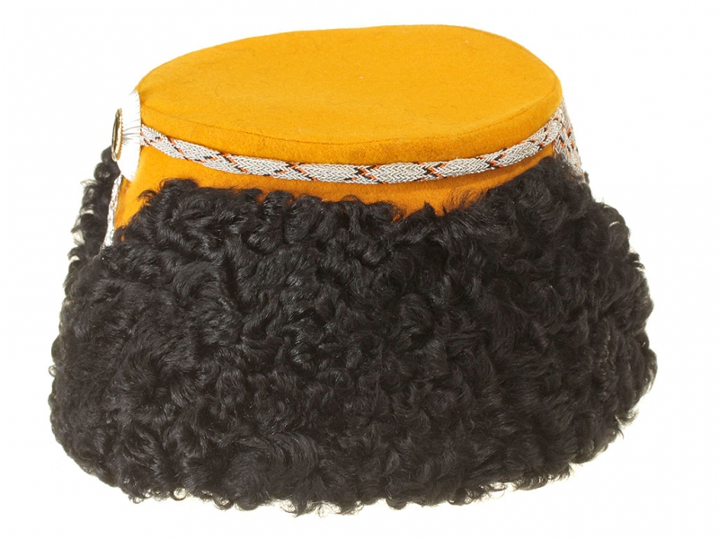 |Шапка барашковая офицерская армейских драгунских полков обр.1882 года. Желтая, белый прибор. Россия, копия