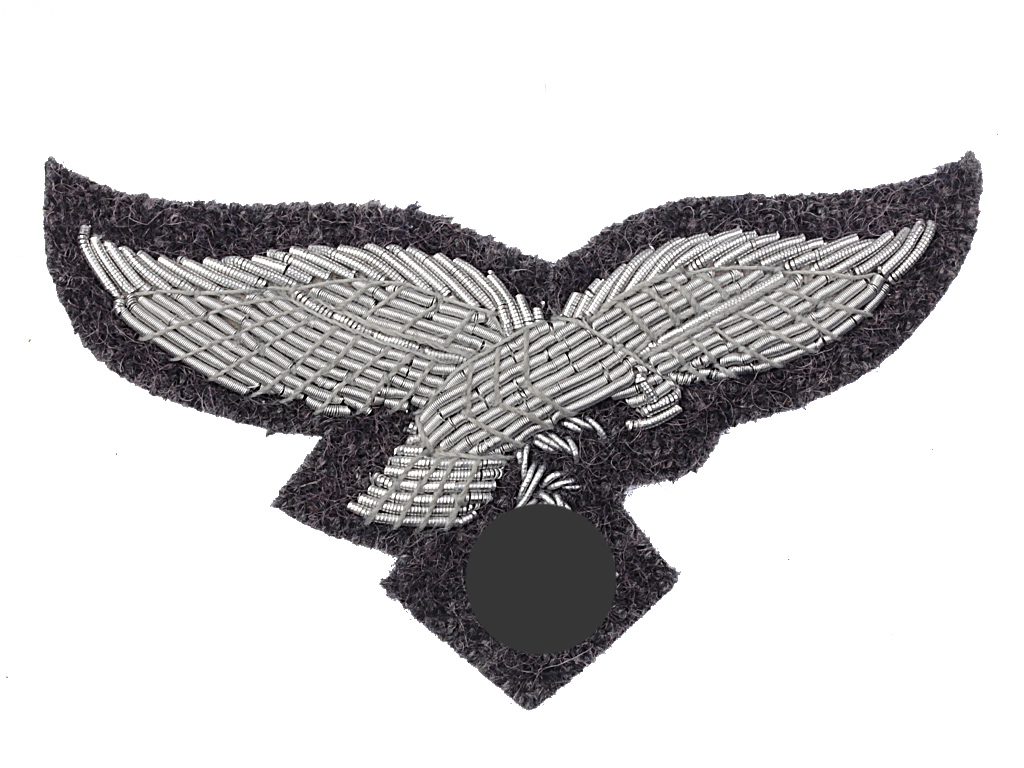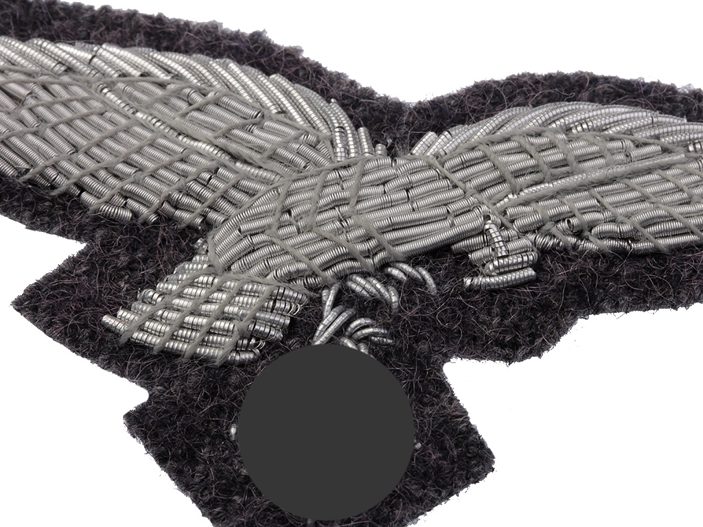 Шитый металлизированной нитью на суконной основе орел на головной убор офицера Люфтваффе.