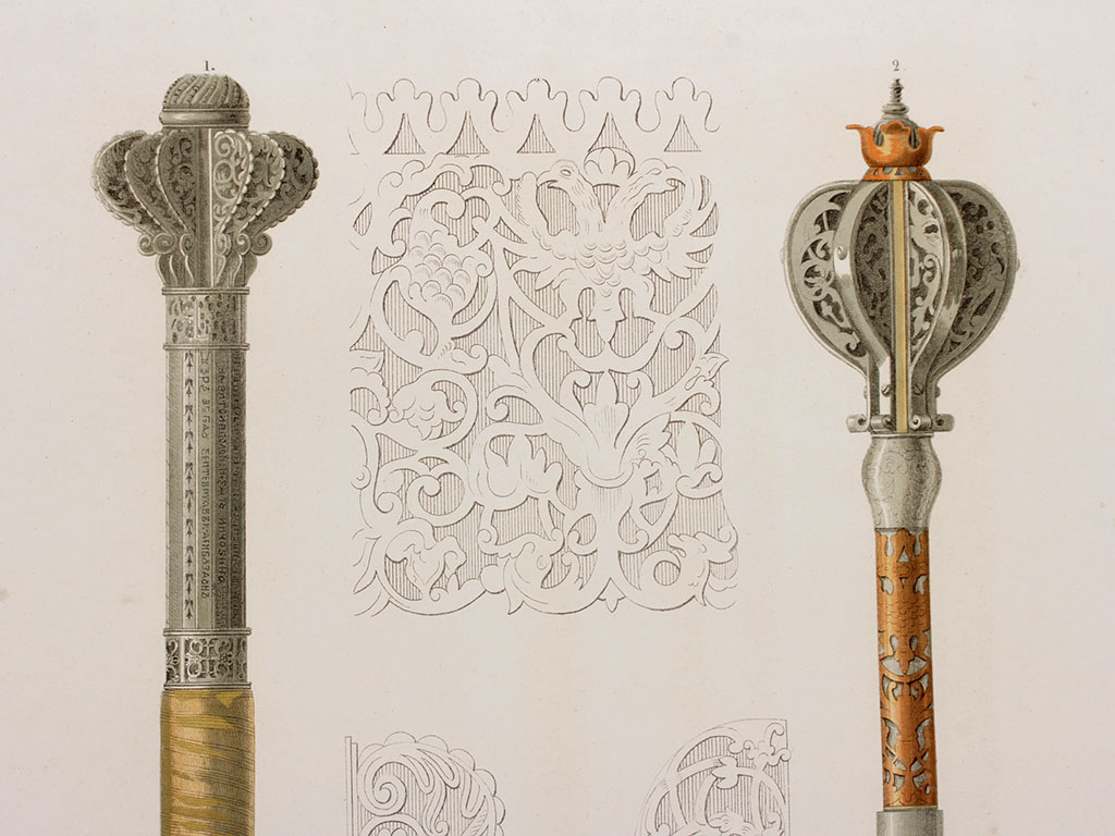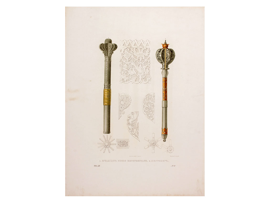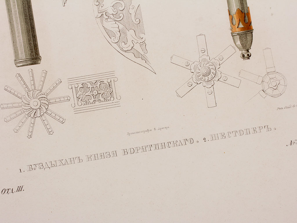 Литография "Буздыхан князя Борятинского и шестопер", художник Ф.Г. Солнцев, издатель Ф. Дрегер. Москва, 1853 год.
