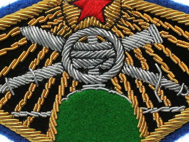 Черное поле, голубой кант, золотое и серебряное шитье.