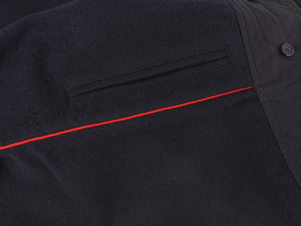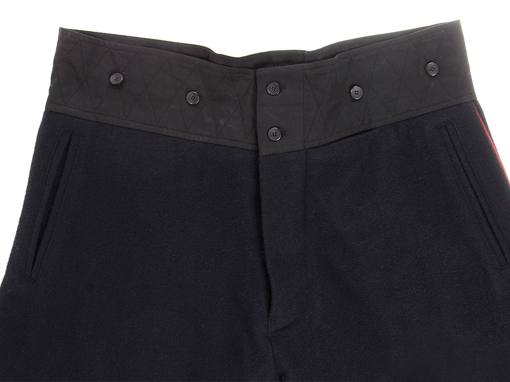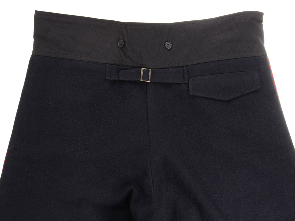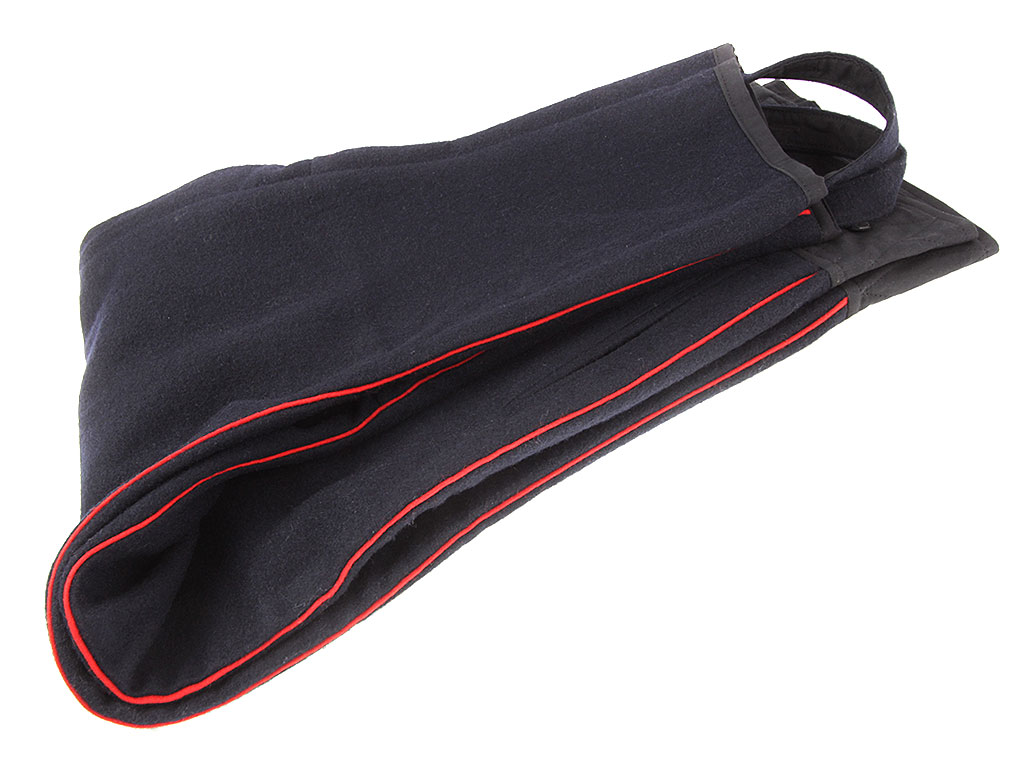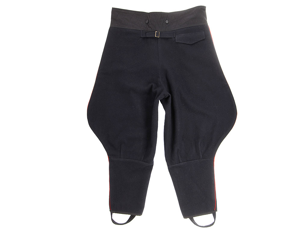 Командирские бриджи (галифе) изготовлены из темно-синей полушерстяной ткани с красным кантом.