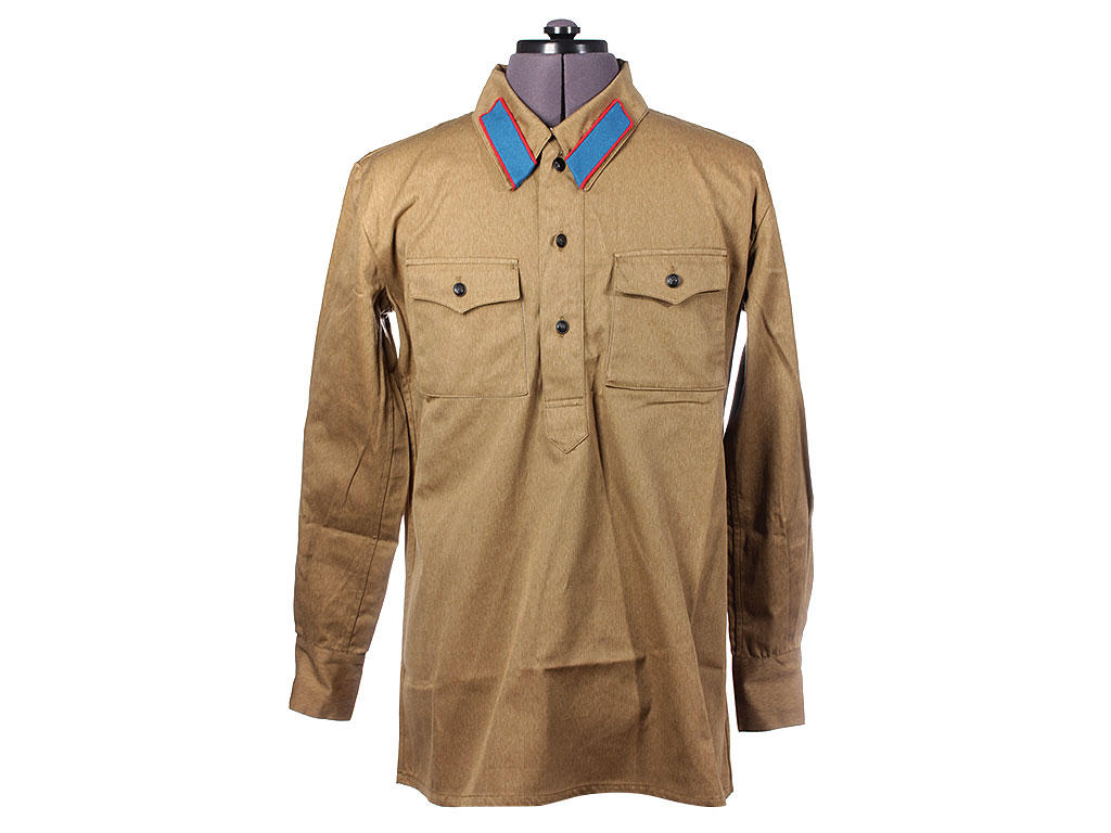 Изготовлена из хлопчатобумажной ткани защитного цвета с отложным воротником, застегивающимся на один крючок. На концах воротника нашиты петлицы установленного образца. Рубаха имеет нагрудную планку с застежкой на три пуговицы и два нагрудных пристроченных кармана с клапанами на одной пуговице. Рукава имеют обшлага с двумя пуговицами.