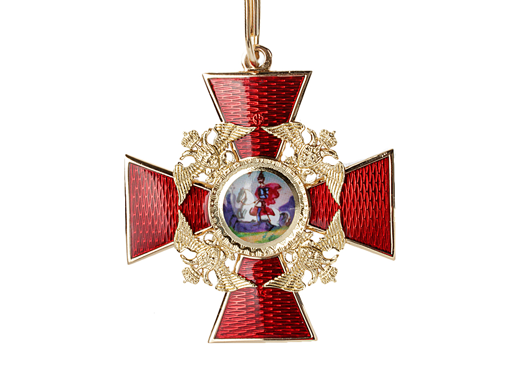 Знак ордена Александра Невского без мечей - ранний вариант, использовавшийся с 1819 до 1856 года. Знаки ордена представленного образца использовались в завершающий период правления Александра I и в период правления Николая I. При изготовлении копии за образец был взят подлинный орден производства В. Кеммерера и В. Кейбеля конца 1840-х годов (орлы с "опущенными" крыльями уменьшенного размера).