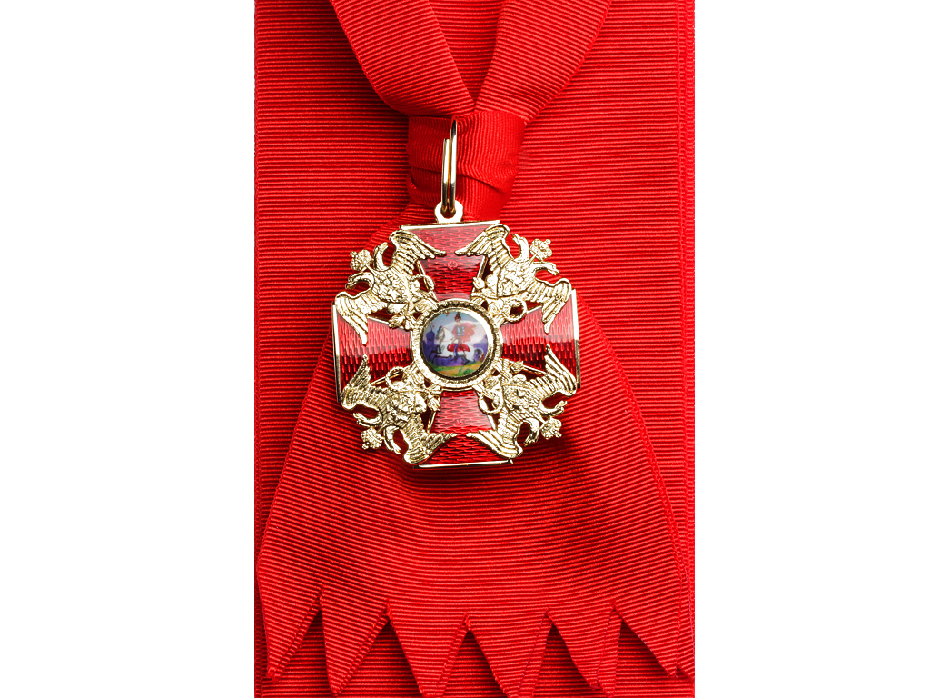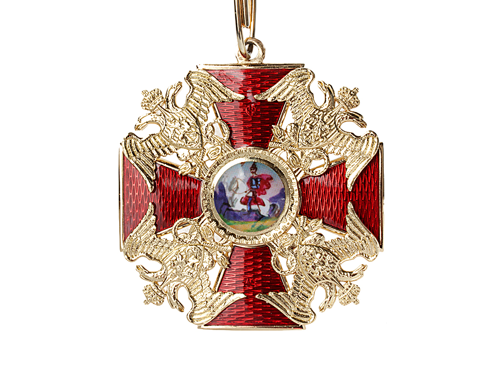 Знак ордена Александра Невского без мечей - ранний вариант, использовавшийся с 1819 до 1856 года. Знаки ордена представленного образца использовались в завершающий период правления Александра I и в период правления Николая I. При изготовлении копии за образец был взят подлинный орден производства В. Кеммерера и В. Кейбеля второй половины 1830-х годов.