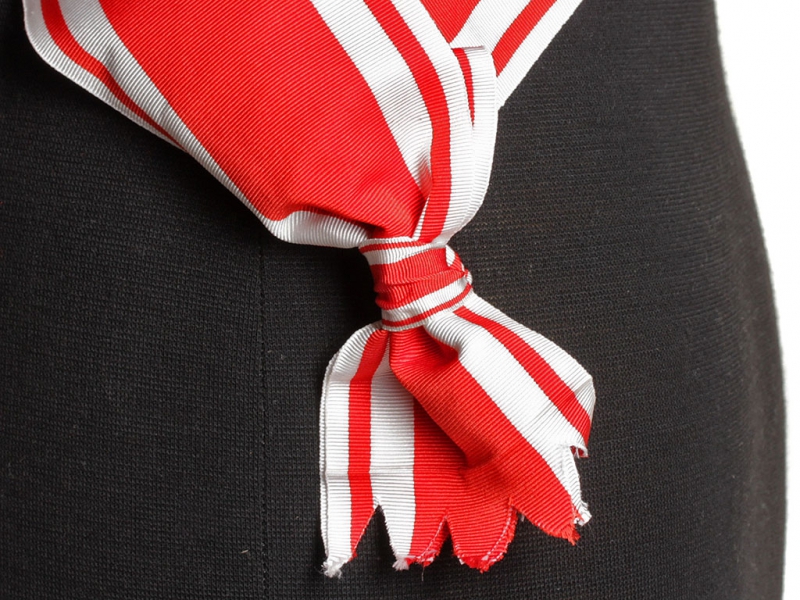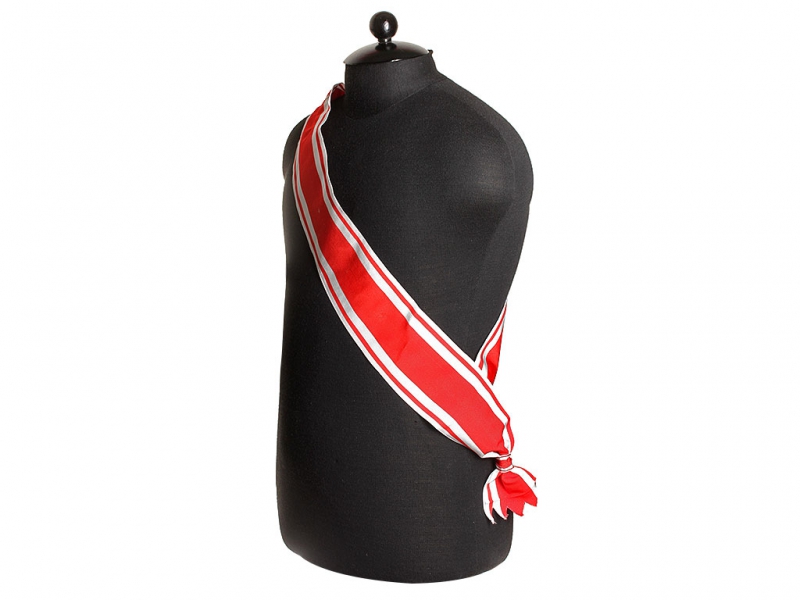 Плечевая лента ордена Святого Станислава, красно-белая лента (муаровая) ордена Святого Станислава первой степени, Россия, Копия. Ширина ленты - 10 см.