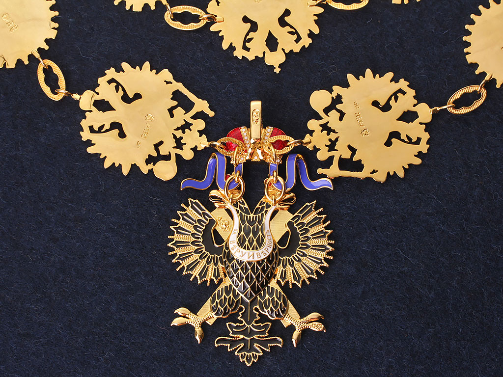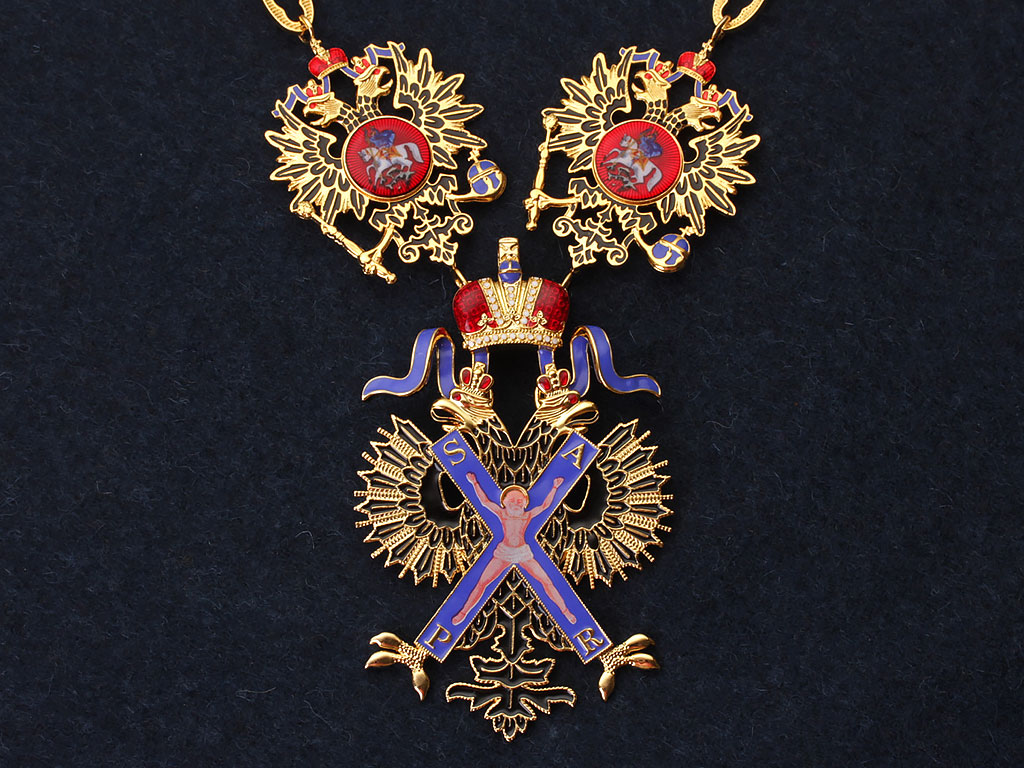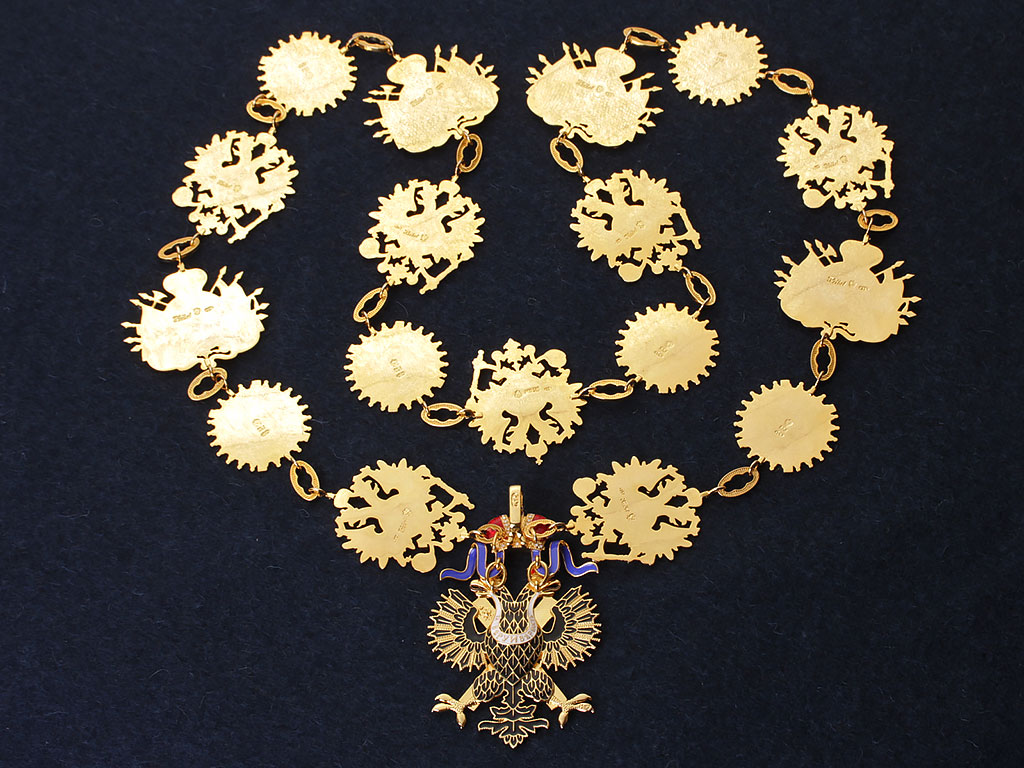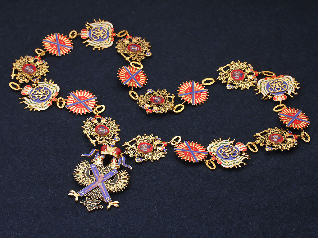 Шейная орденская цепь для ношения знака ордена Святого Апостола Андрея Первозванного - старейшего среди русских орденов и старшего, занимающего высшую ступеньку в иерархии государственных наград Российской империи.