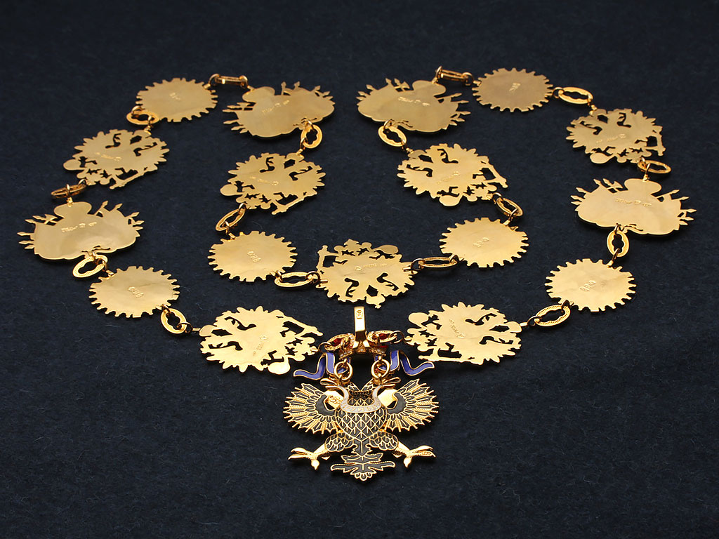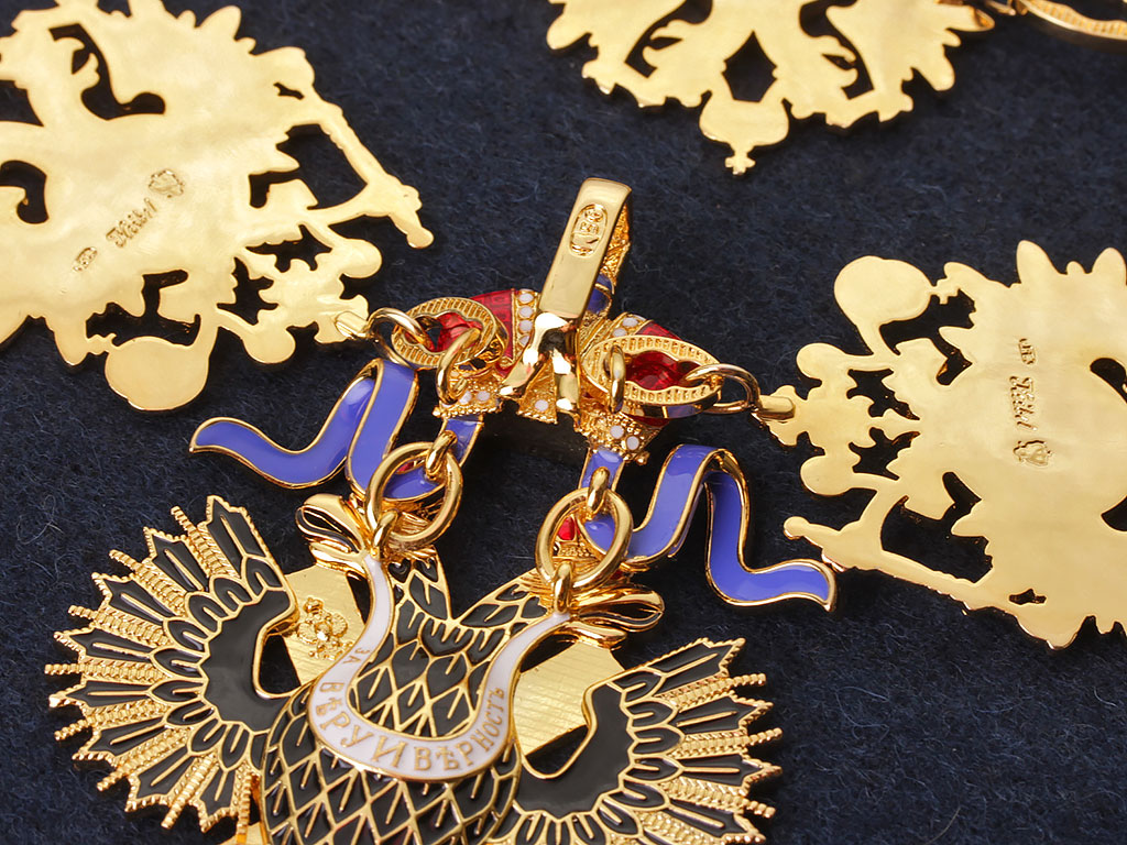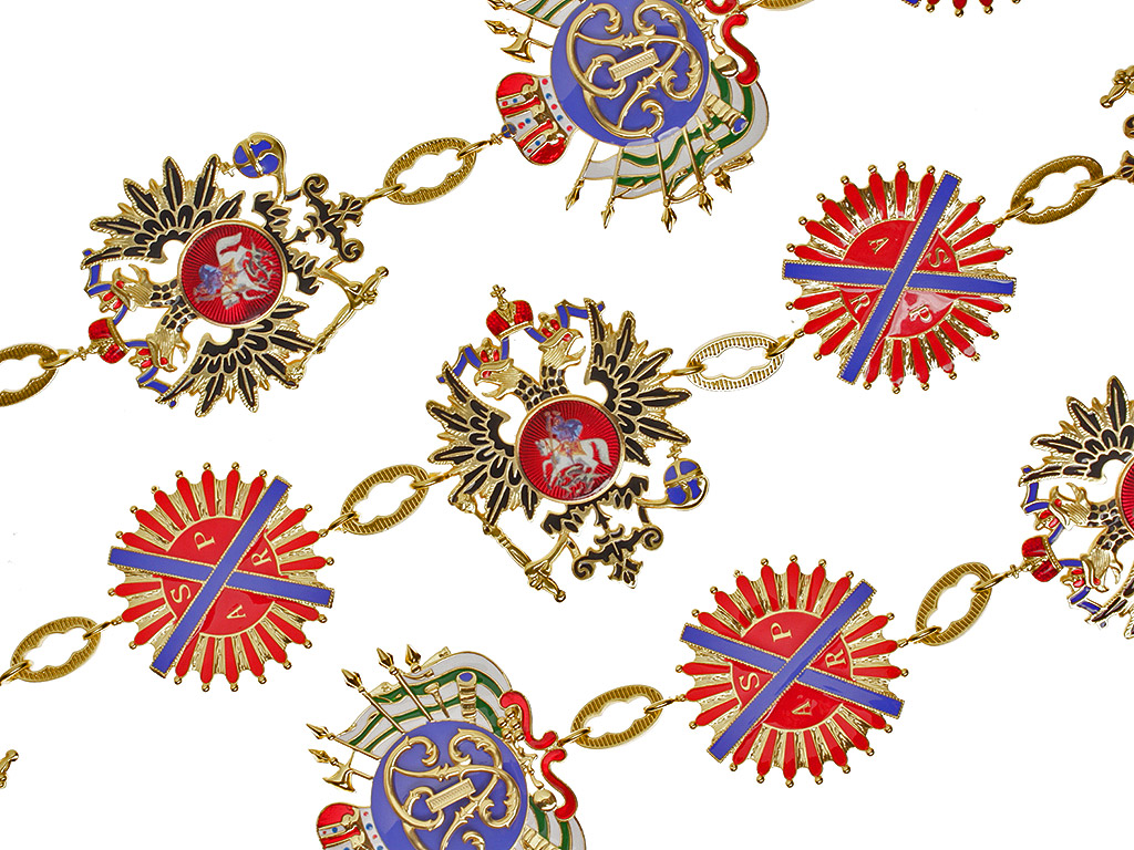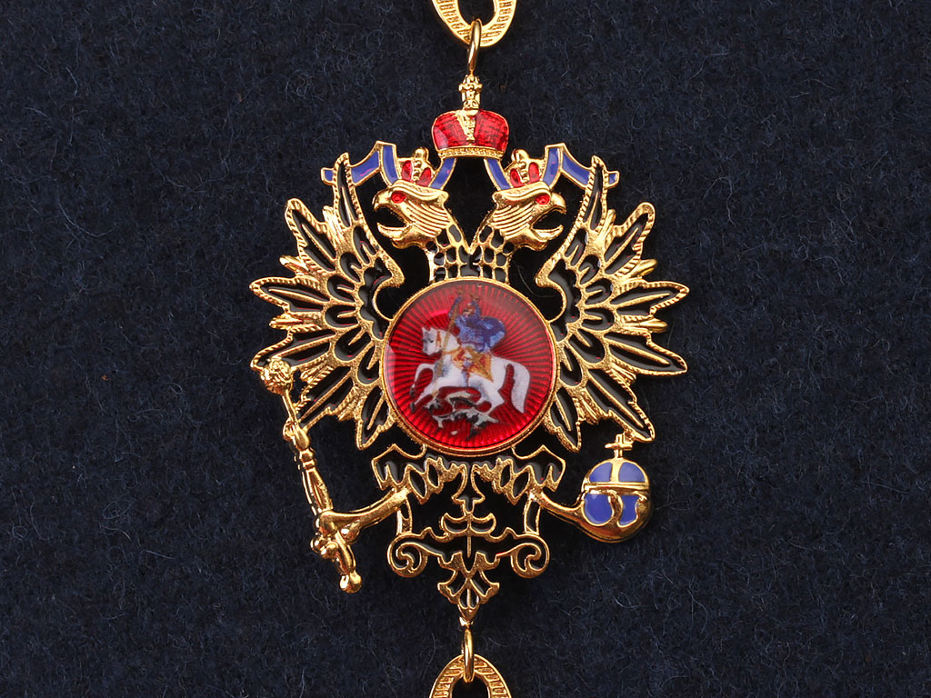 Шейная орденская цепь для ношения знака ордена Святого Апостола Андрея Первозванного - старейшего среди русских орденов и старшего, занимающего высшую ступеньку в иерархии государственных наград Российской империи.