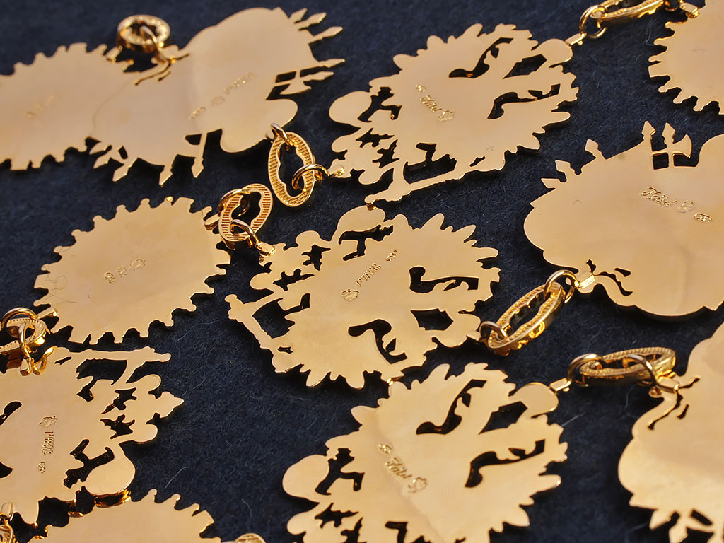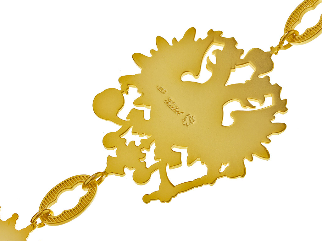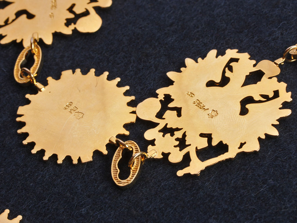 Изготовлен из латуни, все элементы позолочены. Холодная эмаль.