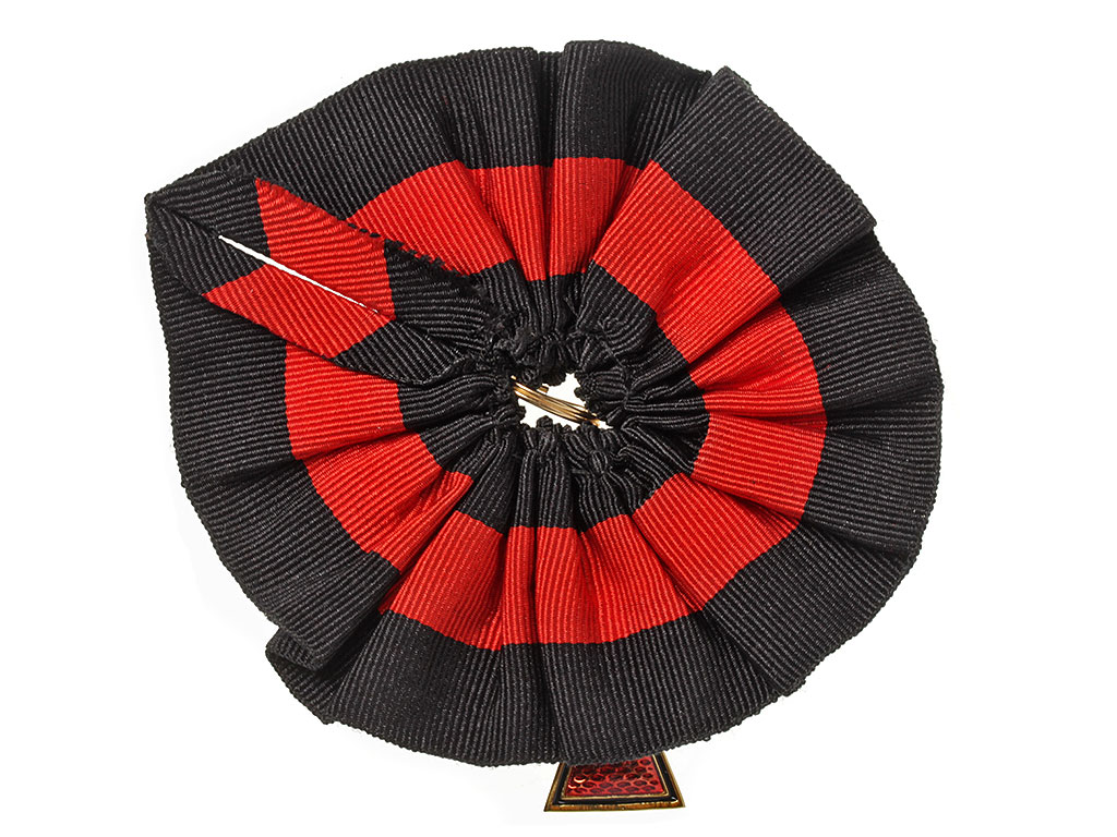 Розетка из шелковой ленты ордена Святого Владимира (от шейного ордена) для ношения ордена на мундире лацканного типа при наличии у награжденного ордена вышестоящей степени либо  вышестоящих орденов. Розетка имеет обметанную прорезь для крепления к пуговице.