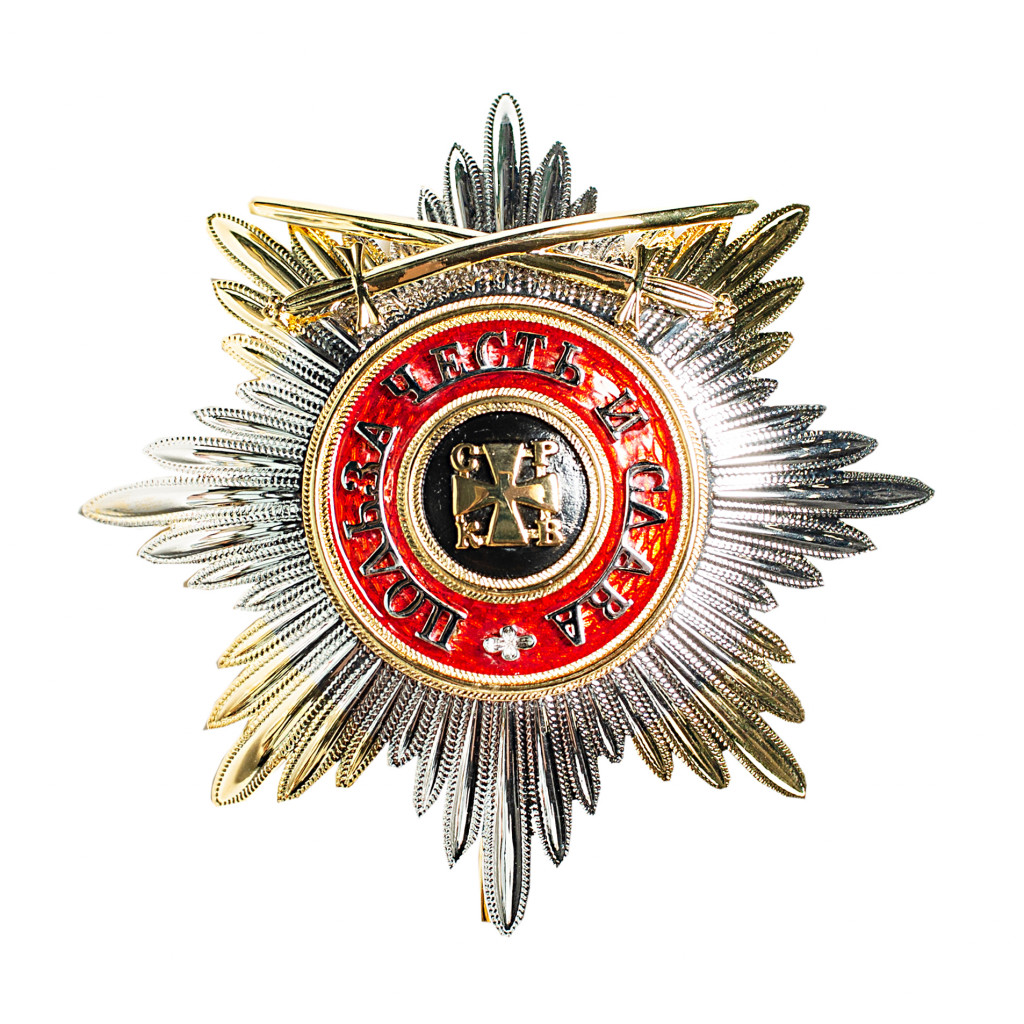 Знак (звезда) Ордена Святого Равноапостольного Князя Владимира 1-й или 2-й степени с мечами (на верхнем луче)