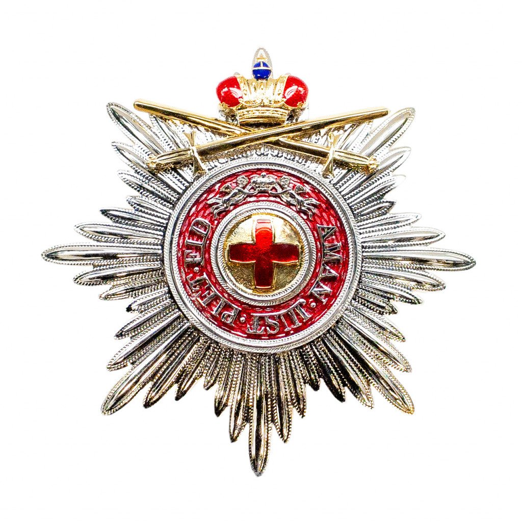 Звезда Ордена Святой Анны 1-й степени с Императорской короной и мечами (на верхнем луче)