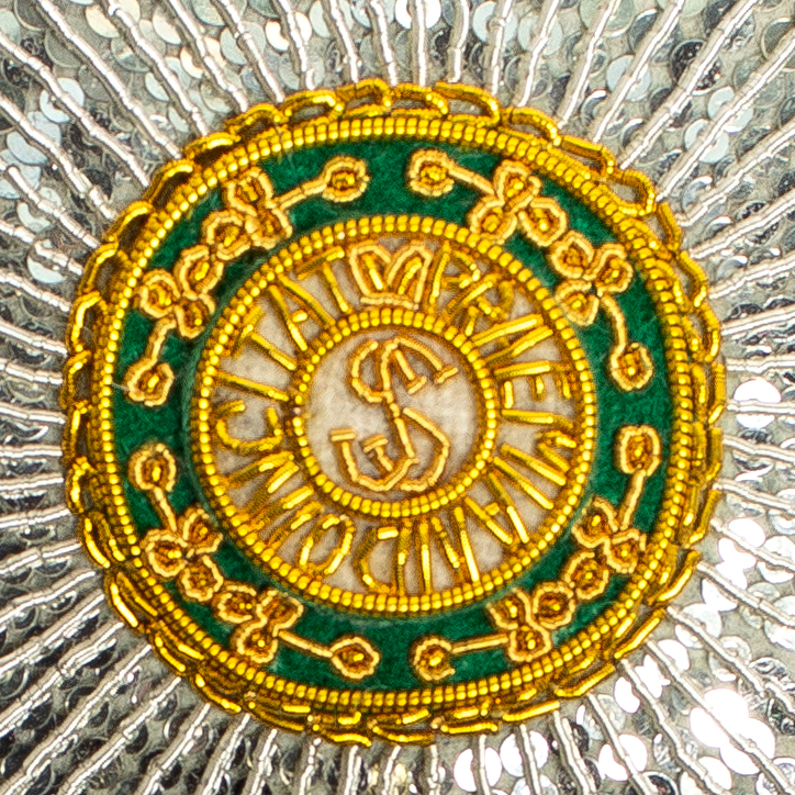 Указом императора Николая I от 29 ноября (17 ноября по старому стилю) 1831 года бывший польский орден Св. Станислава был присоединен к российским орденам под наименованием «императорского царского ордена» с изменением внешнего вида знаков (звезды и креста). Он, как и прежде, был разделен на четыре степени, но уже 28 мая 1839 года император Николай I высочайше утвердил новый статут ордена Св. Станислава, разделенный на три степени. Четвертая степень была упразднена. Копия Звезды ордена Святого Станислава образца 1831-1855 годов - восьмилучевая, шитая серебряной и золотой канителью, шелковой нитью, паетками (блестками), вышитым золотой канителью по белому шёлковому полю центрального медальона в центре которого латинский вензель Святого Станислава из двух латинских букв S. S. и девизом «Premiando incitat» («Награждая, поощряет»), разделенный золотым цветком; далее на зеленой шелковой полосе вокруг девиза — четыре золотой канители лавровые ветви, связанные посередине каждая двумя цветками. Подклад – холст. Копия высокого качества.