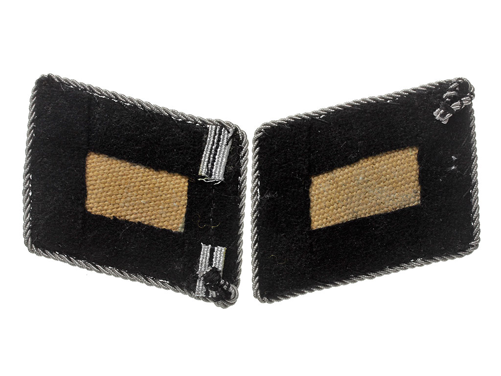 Пара петлиц оберштурмфюрера СС (без установленных на них металлических знаков различия). Копия хорошего качества, вышивка металлизированной нитью.