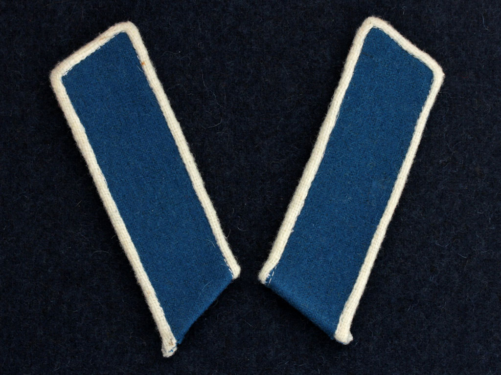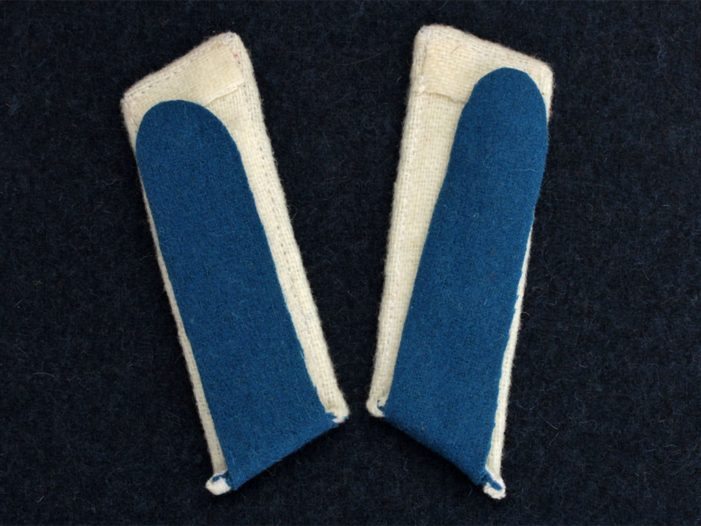 Качественная копия петлиц на шинель рядового 6-го драгунского Глуховского, 12-го драгунского Стародубовского, 3-го гусарского Елисаветградского и 7-го гусарского Белорусского полков. Голубое суконное поле, белый кант.