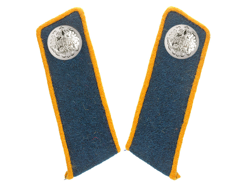 Качественная копия петлиц на шинель офицера 4-го Мариупольского Императрицы Елизаветы Петровны гусарского полка и 8-го Лубенского гусарского полка. Синее суконное поле, желтый кант, посеребренные гербовые пуговицы.