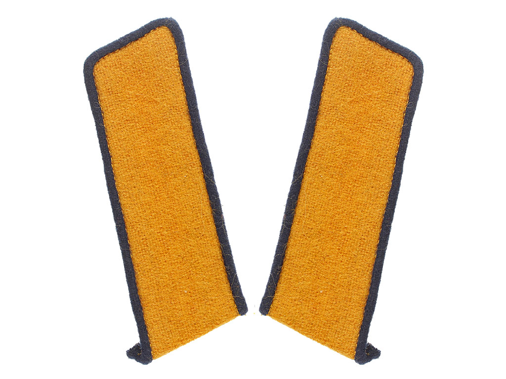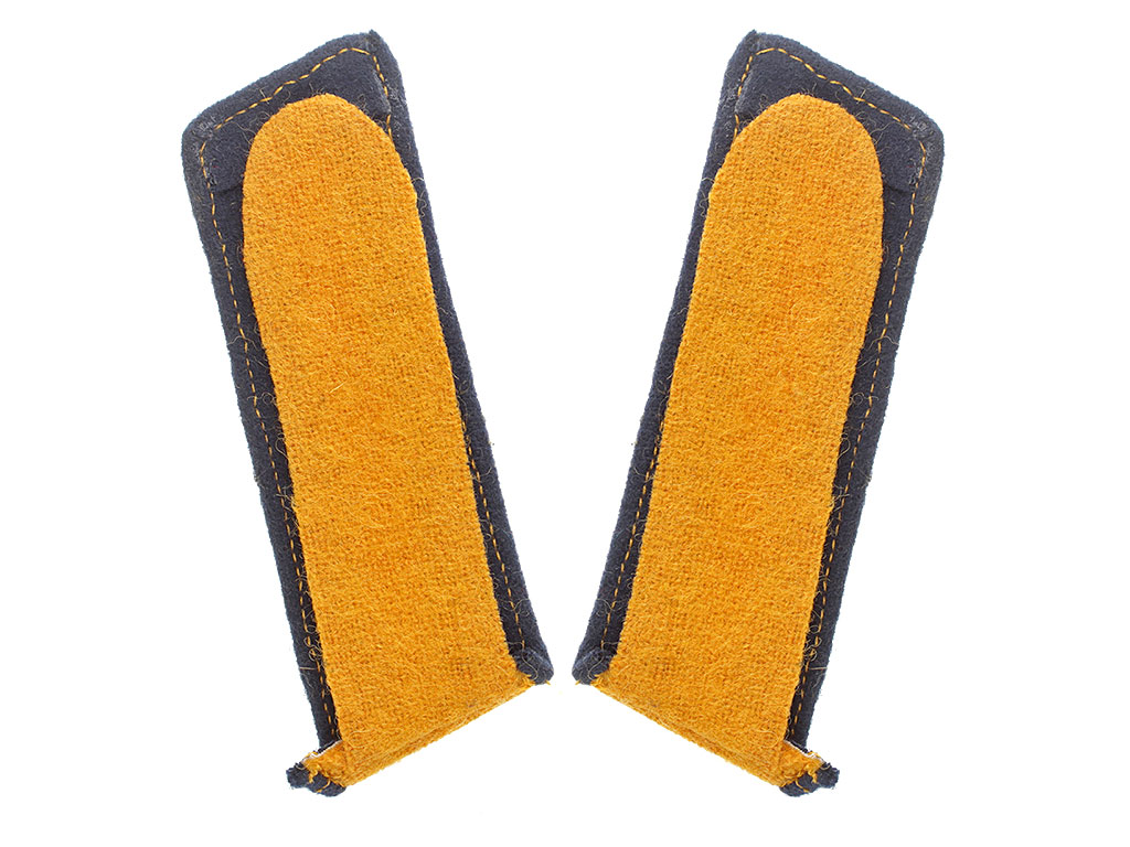 Качественная копия петлиц на шинель рядового 4-го Харьковского уланского полка, 8-го Вознесенского уланского полка, 12-го Белгородского уланского полка и 13-го Владимирского уланского полка. Желтое суконное поле, темно-синий кант.