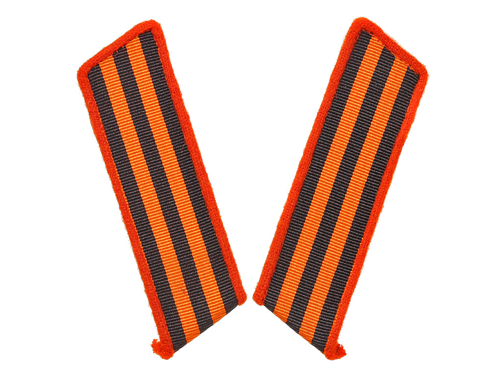 Качественная копия петлиц на шинель рядового Георгиевского батальона для охраны ставки Верховного главнокомандующего. Поле цветов георгиевской ленты, красный кант.