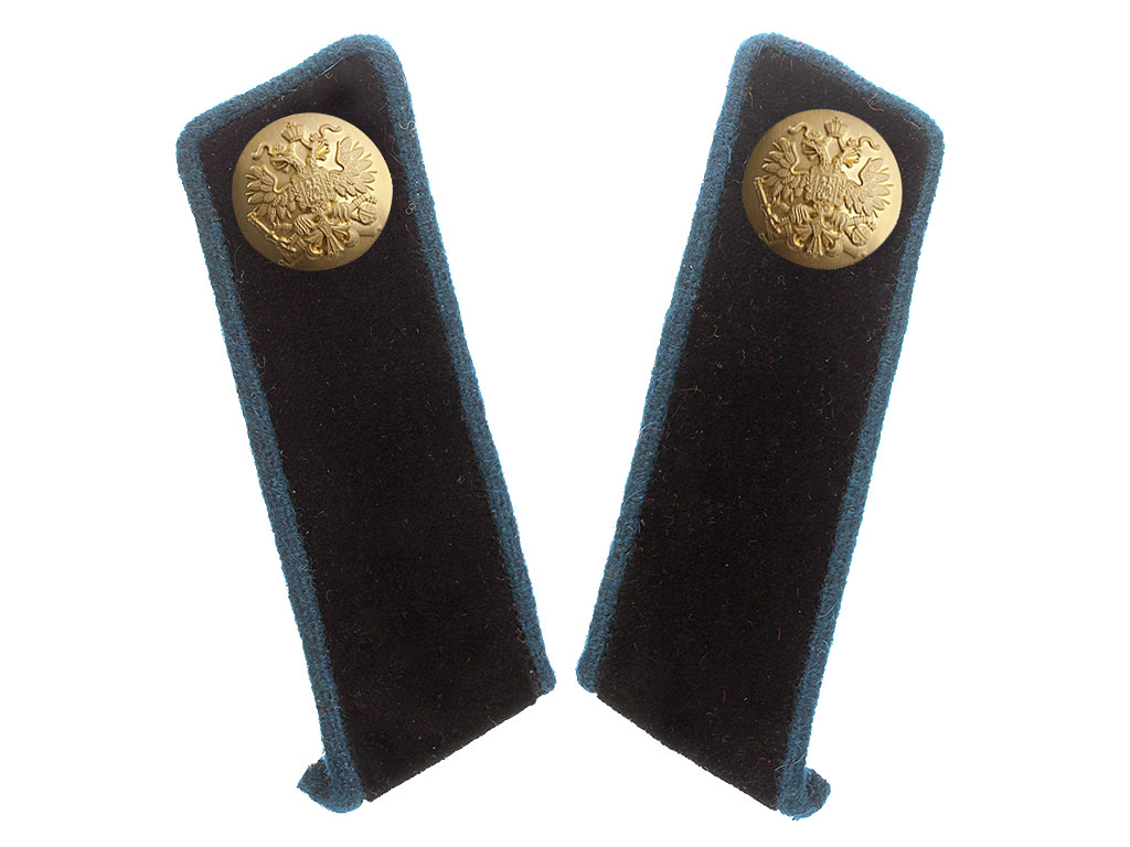 Качественная копия петлиц на шинель унтер-офицера конной артиллерии, Лейб-гвардии 2-й артиллерийской бригады. Черное бархатное поле, темно-зеленый кант, латунные пуговицы с изображением Государственного герба на пушках.