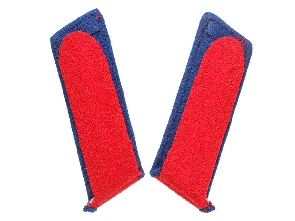 Качественная копия петлиц на шинель унтер-офицера 5-го уланского Литовского полка. Красное суконное поле, темно-синий кант, посеребренные пуговицы с изображением Государственного герба.