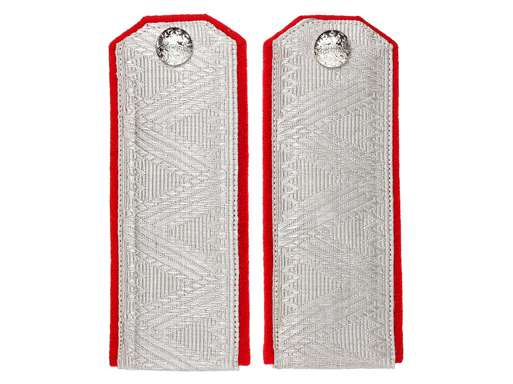 Погоны генерала Лейб-гвардии Саперного батальона, а также всех инженерных частей Русской Императорской Армии. Белое металлизированное серебряное поле с зигзагообразной генеральской вышивкой, красный (алый) кант. Серебряные пуговицы с изображением Государственного герба на топорах.