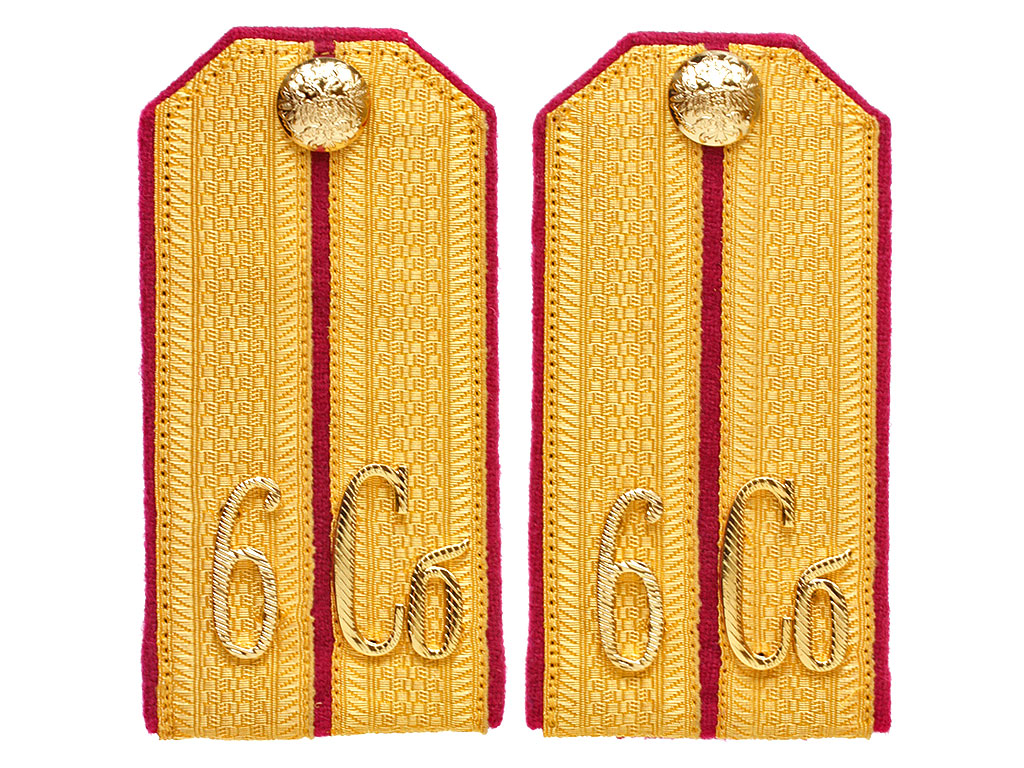 |Погоны капитана 6-го стрелкового Сибирского полка, РИА. Золотое металлизированное поле, малиновый просвет, малиновая основа, кант малиновый. Россия, копия