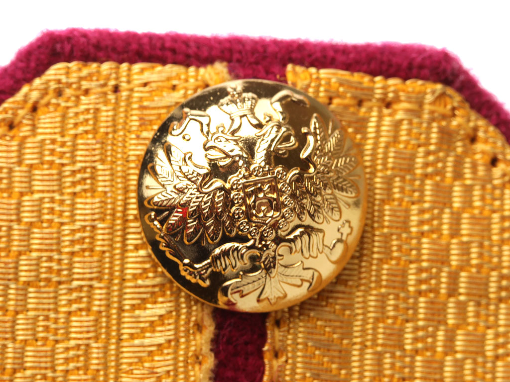 Копия высокого качества. Золотое металлизированное поле, малиновый просвет, малиновая основа, кант - малиновый. С накладными позолоченными шифрами "6 Сб".