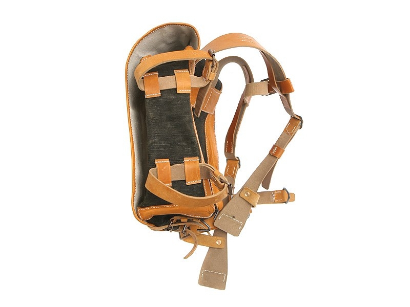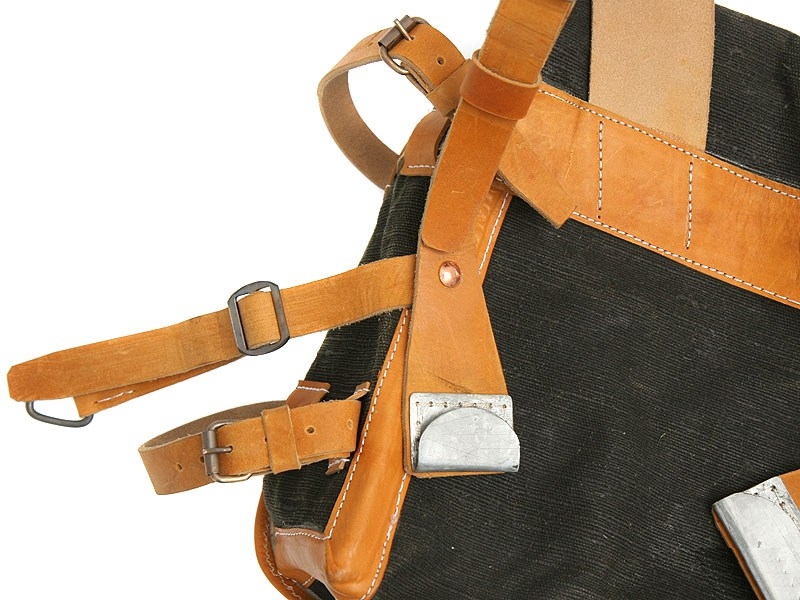 Ранец артиллерии и сапёрных частей РИА (Русской императорской армии). Сделан в строгом соответствии с приказом Российской императорской армии. Все элементы ранца и технология производства идентичны применяемым в начале XIX века. Кожа, брезент, ткань, железо, латунь, медь.