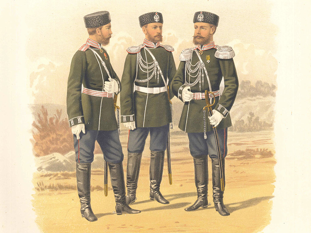 В этот же период начинается постепенный уход от фрачного покроя мундира. Появляется мундир сюртучного типа, на котором ношение пояса-шарфа предусмотрено не было. В кавказских казачьих частях была введена форма, похожая на одежду горцев также без пояса-шарфа.