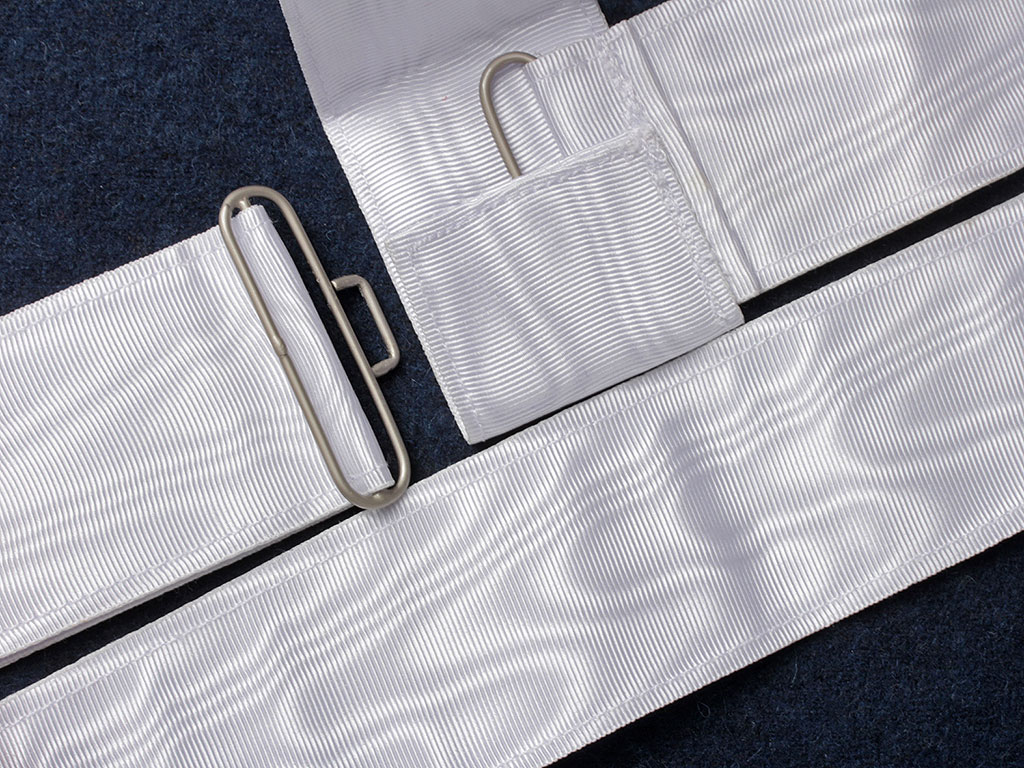 Копия очень высокого качества, при изготовлении за основу взят оригинальный Свитский офицерский пояс-шарф из белого муара.