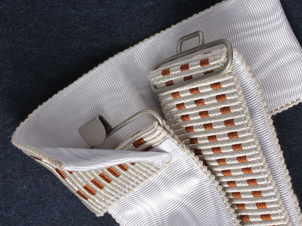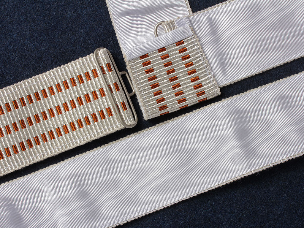 В 1837 году вводится новый образец офицерского шарфа. Прежде всего, изменено название: "пояс-шарф". Теперь он изготавливается из узкой серебряной тесьмы с тремя черно-оранжевыми полосками и двумя серебряными кистями. Тесьма крепится на жесткую кожаную подкладку и застегивается на боку пряжкой. От завязывания шарфа узлом так, как это было раньше, отказались.