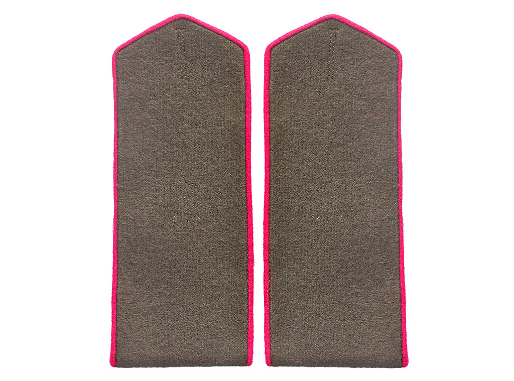Полевые погоны рядового состава и младшего комначсостава пятиугольные из сукна цвета хаки с цветной окантовкой, без эмблем родов войск и служб (!).