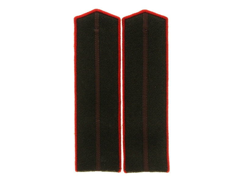 Полевые погоны рядового состава и младшего комначсостава пятиугольные из сукна цвета хаки с цветной окантовкой, без эмблем родов войск и служб (!).