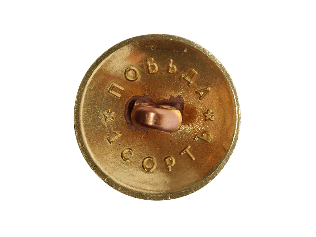 Пуговица с изображением государственного герба и артиллерийских пушек. Желтый приборный металл.