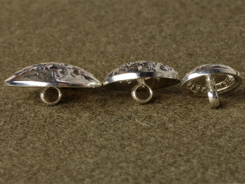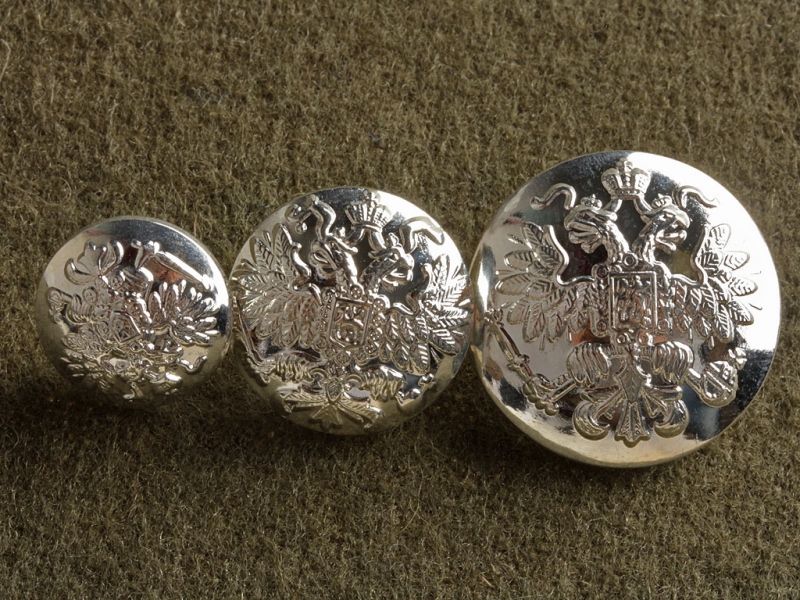 Такие пуговицы носились в Частях кавалерии, коим был присвоен приборный металл белого цвета. Также в полиции, жандармерии и отдельном корпусе жандармов, обозных-транспортных частях.