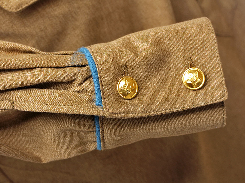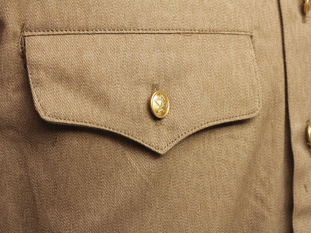 На погонах - форменные позолоченные пуговицы со звездой, в центре которой серп и молот.