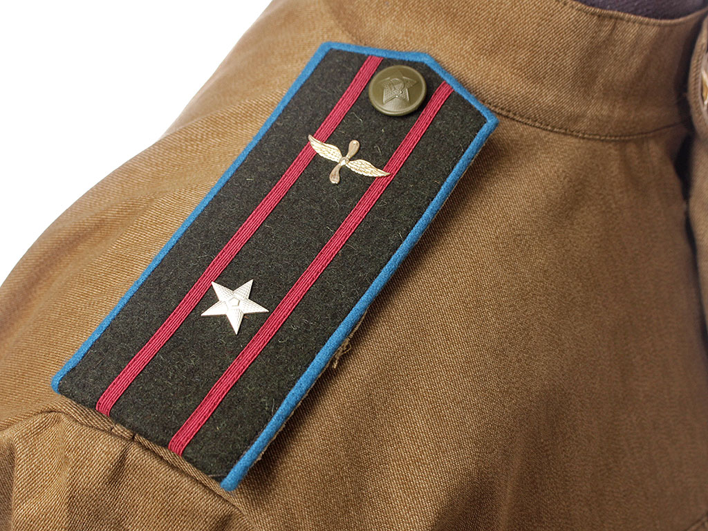 Летняя полевая хлопчатобумажная гимнастерка образца 1943 года со знаками различия летчика (полевые погоны) - майора авиации РККА образца 1943 года.