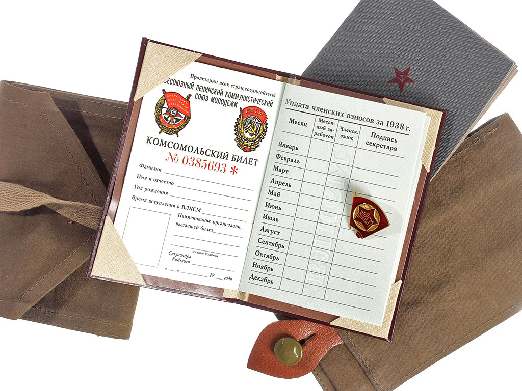 - Комсомольский билет ВЛКСМ времен Великой Отечественной войны с обложкой