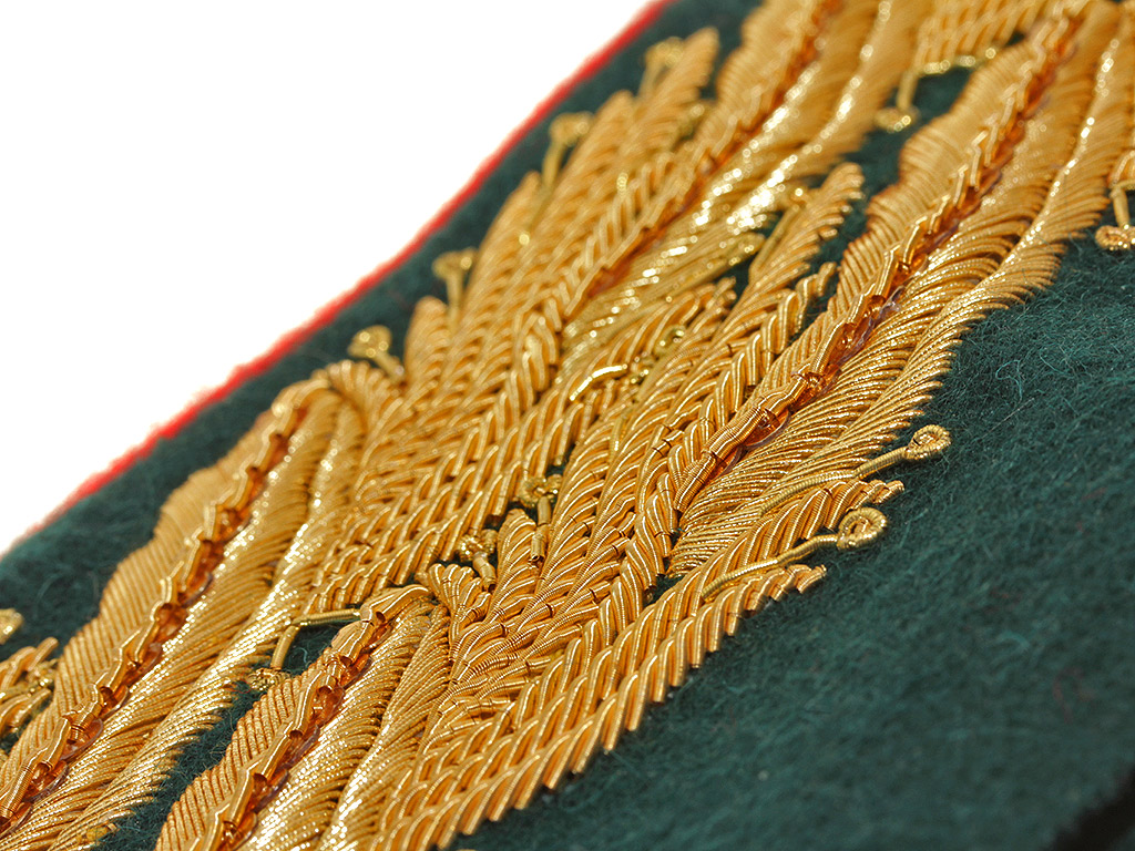 Высокое объемное шитьё разными типами нитей вручную расшитый серебром воротник и обшлага для изготовления парадного мундира.